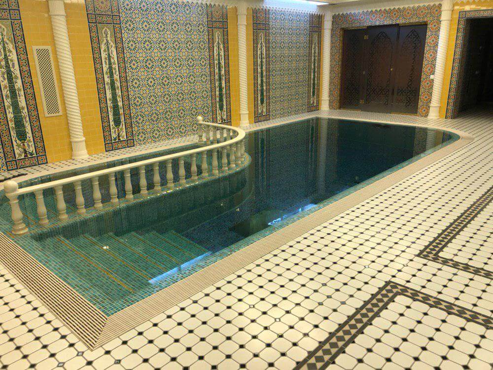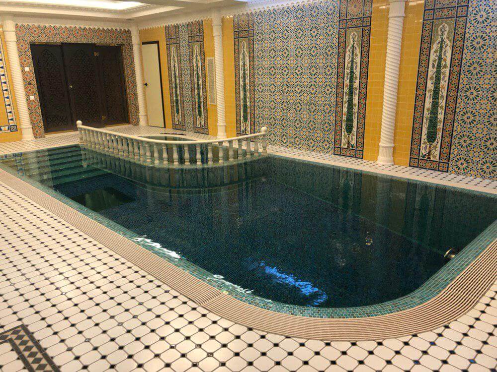При строительстве бассейна учитывается месторасположение технического помещения, трубопроводов, система микроклимата (для закрытых бассейнов), обходные дорожки и зона отдыха.